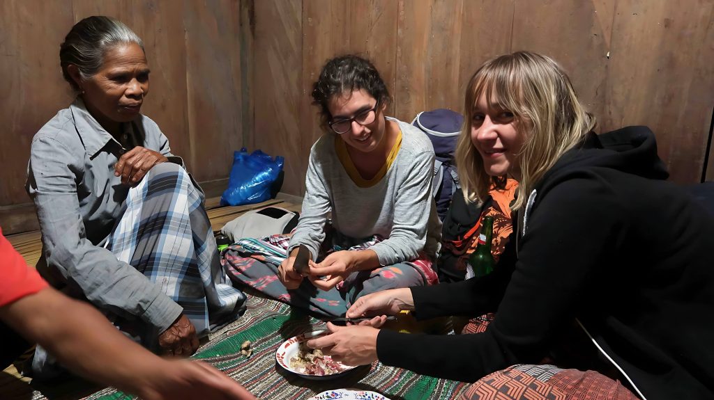 The first thing we did when we arrived was a ritual. It does involve killing an animal so I will not get into details. As a vegetarian, I felt a bit uncomfortable, but I respect their religion and the significance it holds for them. And I do believe that the spirits of their ancestors are looking after me from then on! After the ritual, we cooked dinner together, they taught us how to use all their spices, that special kitchenware they have and how to prepare their delicious traditional food. We shared a lovely evening together and felt like part of the family. We slept on their terrace, which they made super comfortable for us. In the morning, we enjoyed a breakfast of fresh fruit, the best breakfast you can imagine, and set off to make more memories.